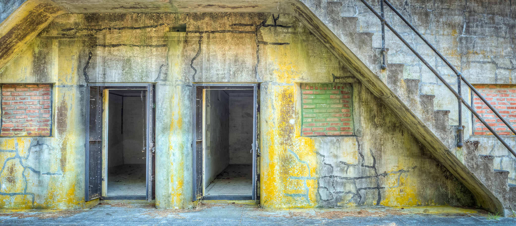 Battery James Calwell. Named for Captain James Calwell, Infantry, commissioned in 1847. Assigned to the Virginia Volunteers, he took part in the early operations of the Mexican War. He was wounded in action at Paso Ovejas. He died September 18, 1847. Battery Calwell construction was started in 1903. Construction was completed in 1964 at a cost of $99,500. The battery mounted four 6 inch disappearing carriage guns. A disappearing carriage gun was lowered to below the lip of the battery for loading. After loading the gun was raised to firing position above the lip. When the gun was fired, the recoil forced the gun back down to the loading position. The only time the gun was visible to the enemy was during firing. The guns were removed in 1918 and shipped to the East Coast where they were mounted of railroad cars and shipped to the European Theater. Gun Weight = 48 Tons Projectile Weight = 108 Pounds Powder Weight = 32 Pounds Range = 7.5 Miles Rate of Fire = 4 rounds per minute Wartime Manning = 5 Officers, 175 Enlisted. Fort Flagler State Park. August 6, 2013.